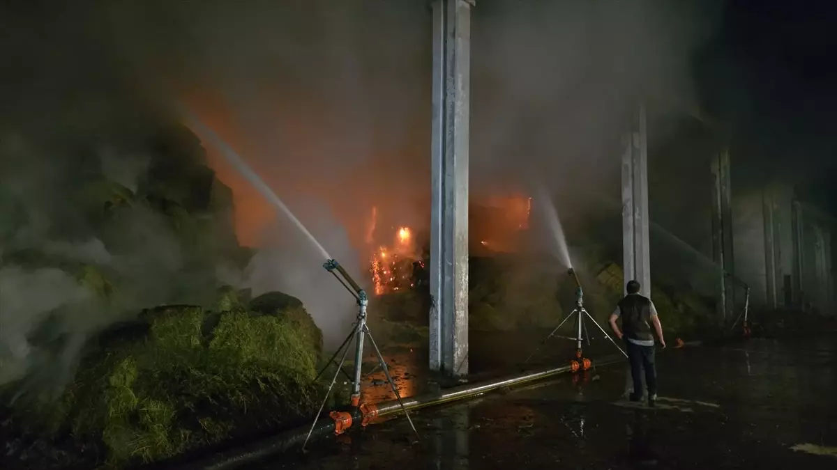 Yangında, bin ton yonca balyası yanarken, deponun çatısında bulunan güneş panelleri zarar gördü.