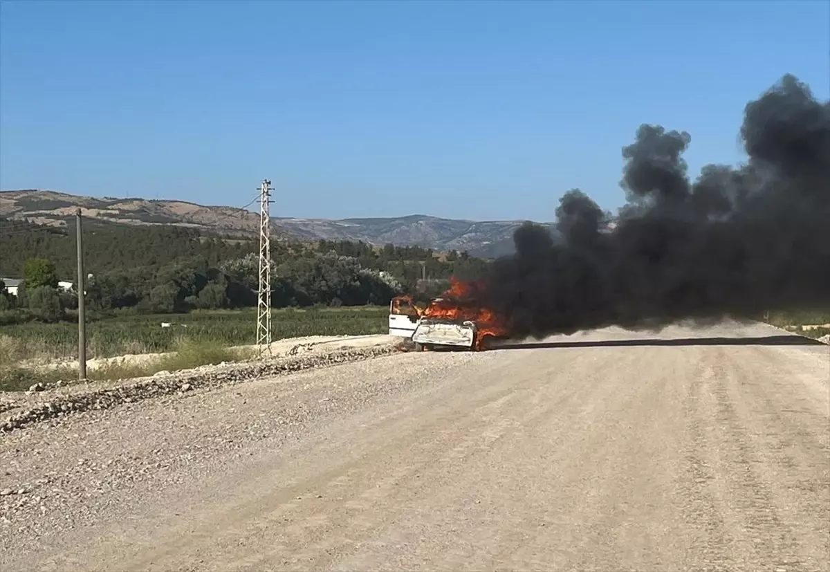 Durumu fark ederek yol kenarına park eden sürücü ile yanında bulunan kişi, araçtan indi.