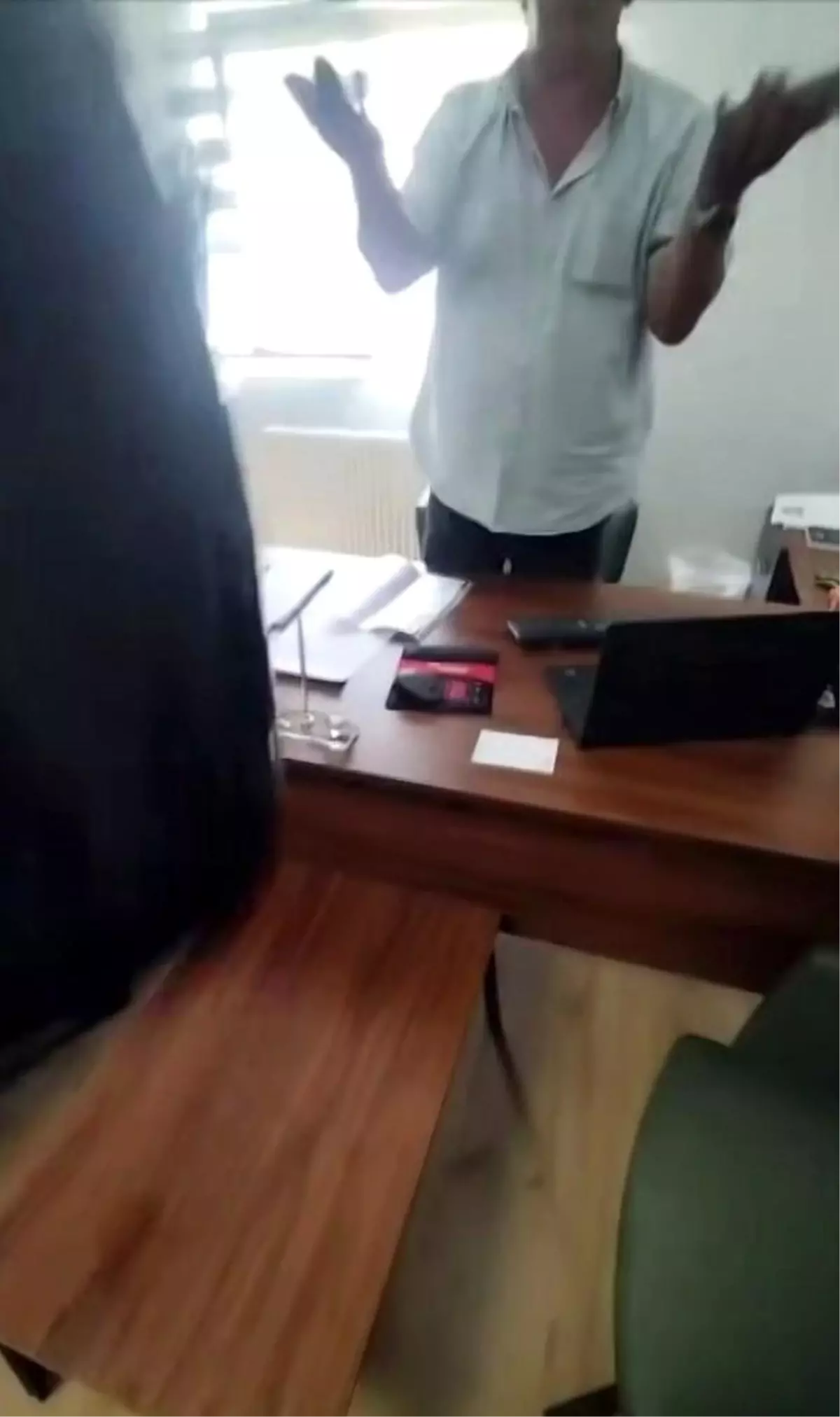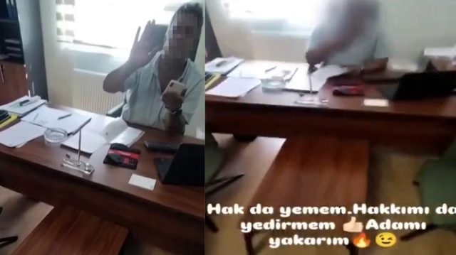 Ofisten ayrılan E.A., cep telefonu kamerasıyla kayıt altına aldığı olay anını sosyal medya platformlarında paylaştı. Görüntülerin yayılmasının ardından, polis ekiplerinin çalışması sonucu gözaltına alınan E.A.’nın emniyetteki işlemleri sürüyor.