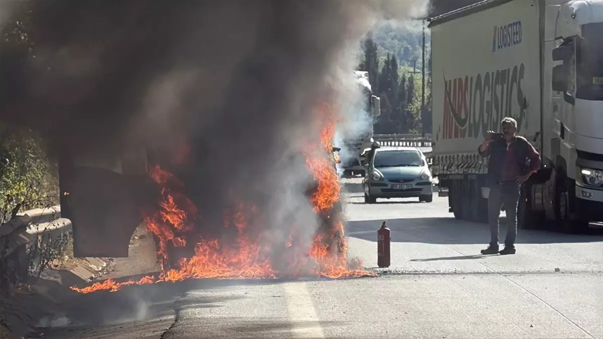 Otoyolun Ankara yönü Sapanca kesiminde İbrahim Yolcu idaresindeki 41 AVK 864 plakalı kamyonet, henüz belirlenemeyen bir sebepten dolayı motor bölümünden alev aldı.