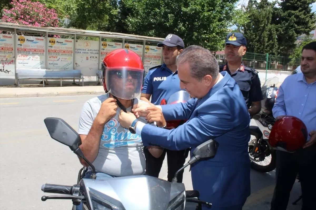 Mersin’in Anamur ilçesinde motosiklet sürücülerine kask hediye edildi.
