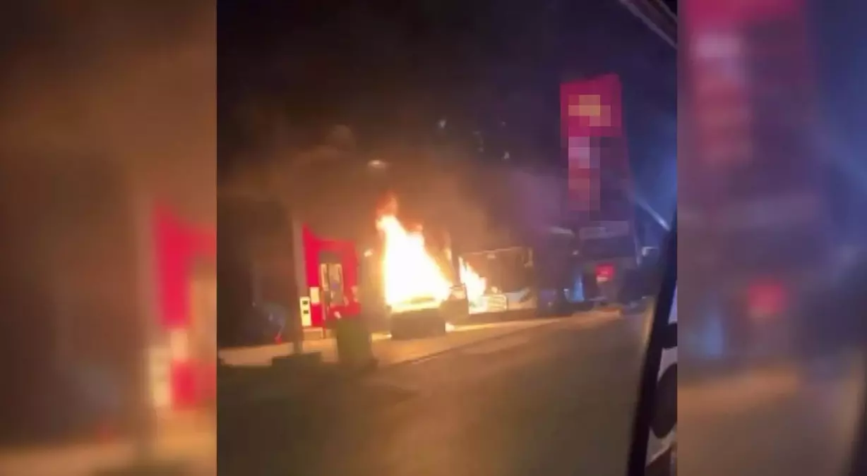 ANKARA’da, bir akaryakıt istasyonunda park halinde iken alev alan otomobil, kullanılamaz hale geldi. O anlar cep telefonu kamerasına yansıdı.
