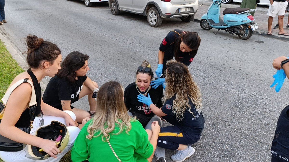 Antalya’nın Manavgat ilçesinde Hisar Caddesi istikametine seyir halindeki motosiklet sürücüsü Hamide T., önünde gitmekte olan aracın duraklamasından dolayı panikledi.