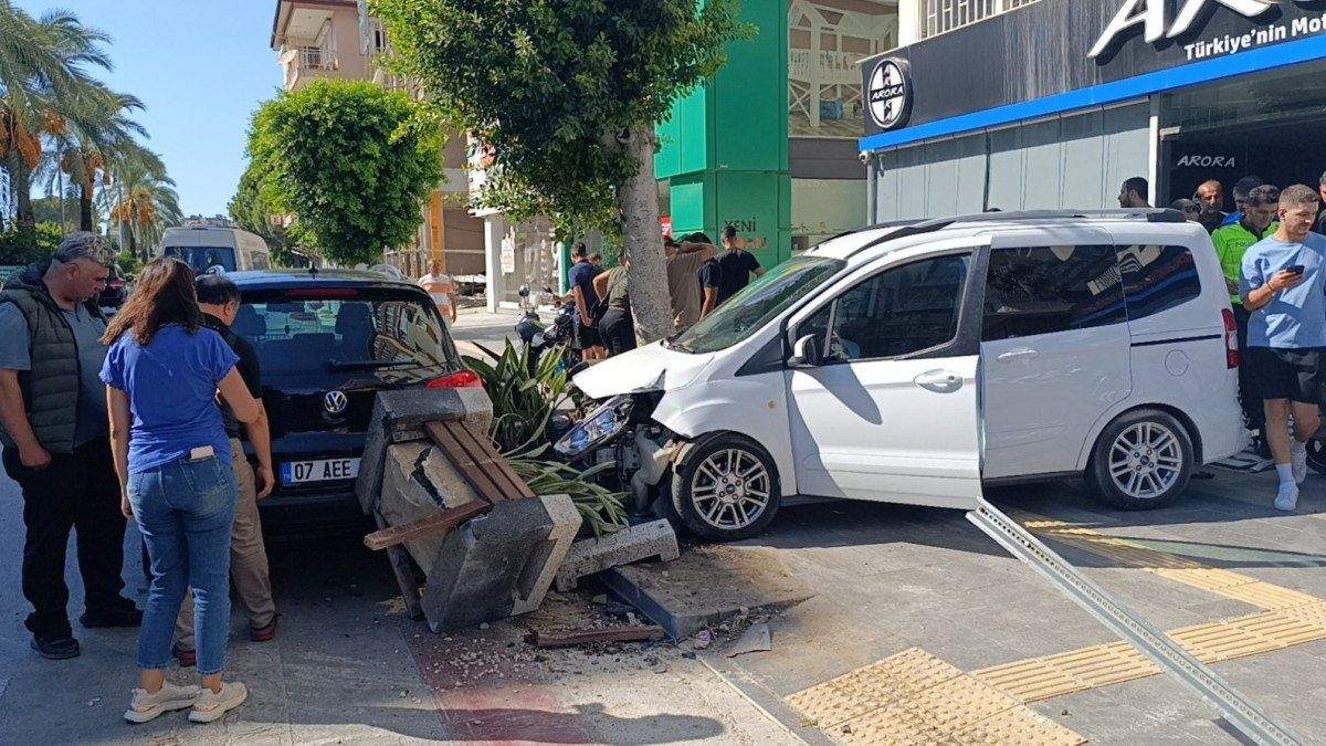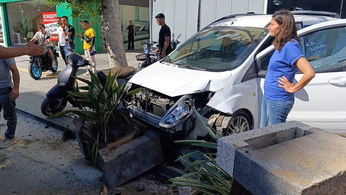 Sürücüsünün aracın kontrolünü kaybetmesi sonrası araç, kaldırıma çıkarak önce motosiklet bayi önündeki araçlara çarptı ve ardından kaldırım üzerindeki betonarme çiçekliklere çarparak durabildi.
