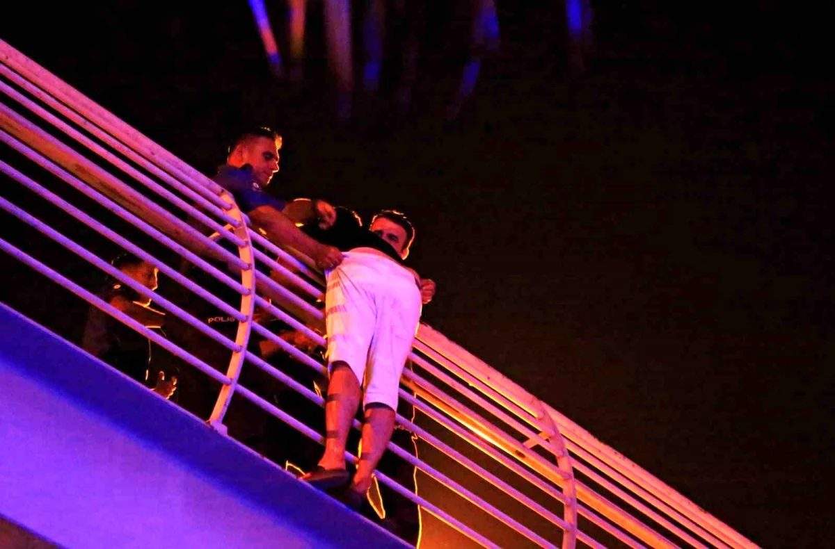 Antalya Büyükşehir Belediyesi İtfaiye Daire Başkanlığı’na bağlı ekipler de şahsın bulunduğu noktaya olumsuz bir duruma karşı şişme yatağı yerleştirdi. Polis ekiplerinin ikna çabalarına karşılık vermeyen Mert Y.’yi yakınları ile görüştürmek için bir polis memuru telefonunu verdi. Polis memurundan telefonu alan ve bir süre konuşan Mert Y. telefonu geri uzattığı sırada polis ekipleri tarafından yaka paça tehlikeli alandan alındı. Kelepçelenerek üst geçitten indirilen Mert Y. ifadesi alınmak üzere polis merkezine götürülürken, yol yeniden araç trafiğine açıldı. – ANTALYA