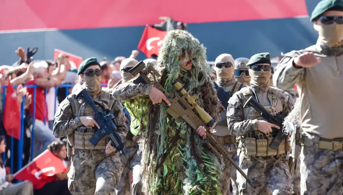 Konuşmaların ardından törene katılan öğrencilerin, askeri birliklerin, polis ve atlı polis birliklerinin, Sahil Güvenlik ekiplerinin, gazilerin geçiş töreni düzenlendi. Tören geçişine katılan komandoların geçişi sırasında vatandaşlar alkışlarla karşılık verdi. Öğrenciler ise Mustafa Kemal Atatürk’ün sözleri yazılı pankartlarla yürüyüşe katılırken, çocuklar ise aileleriyle birlikte alanda coşkulu töreni izledi. Tören geçişi sırasında polis ve Sahil Güvenlik helikopterleri ise alçak uçuş yaparak korteje havadan katıldı.