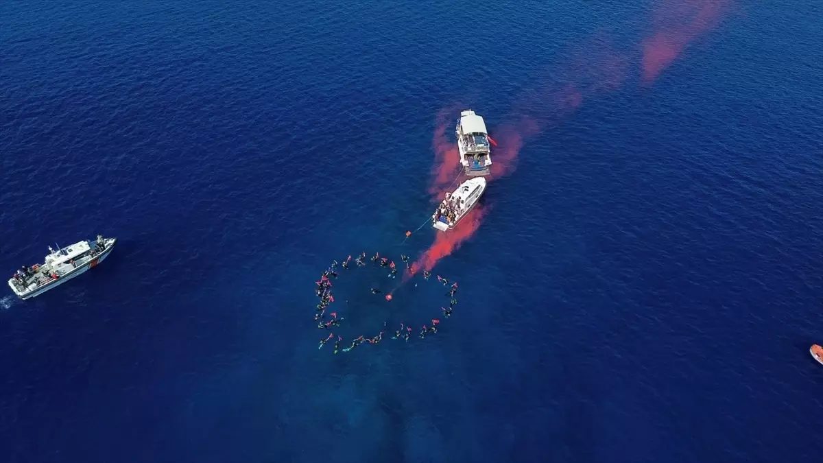 Bu esnada 37 dalgıç da su altından Türk bayraklarıyla yüzeye çıktı.
