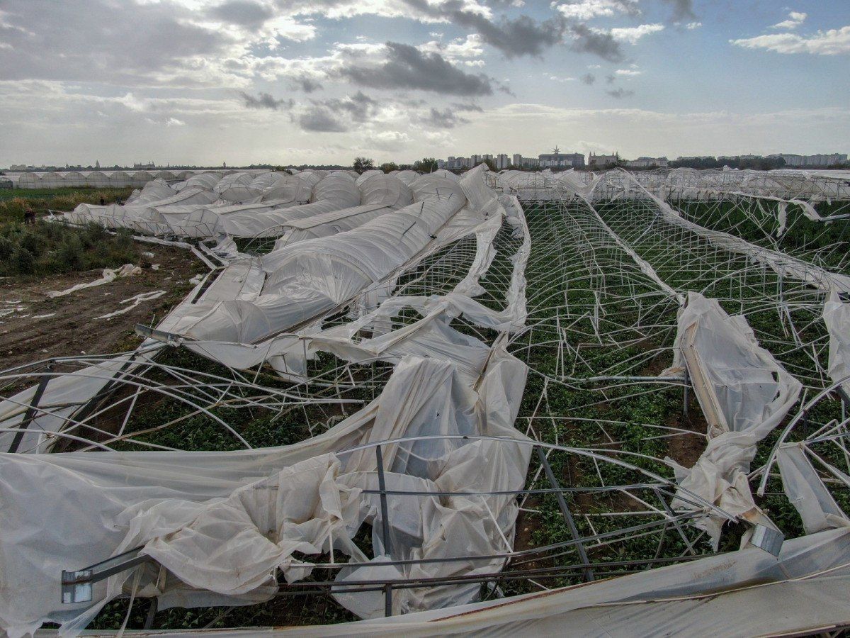 Demirleri ve naylonları fırlatıp atan hortum, seralardaki domates, biber ve patlıcanlara da büyük zarar verdi.