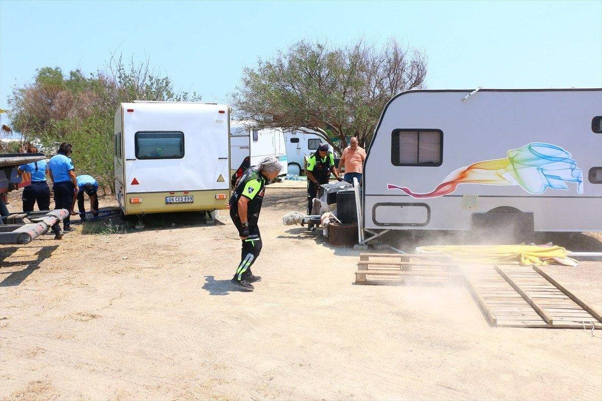 Alanda sabit halde bulunan ve sahibi belirlenemeyen 8 karavan ise çekiciyle Büyükşehir Belediyesi Kırsal Hizmetler Dairesi Başkanlığı otoparkına çekildi.