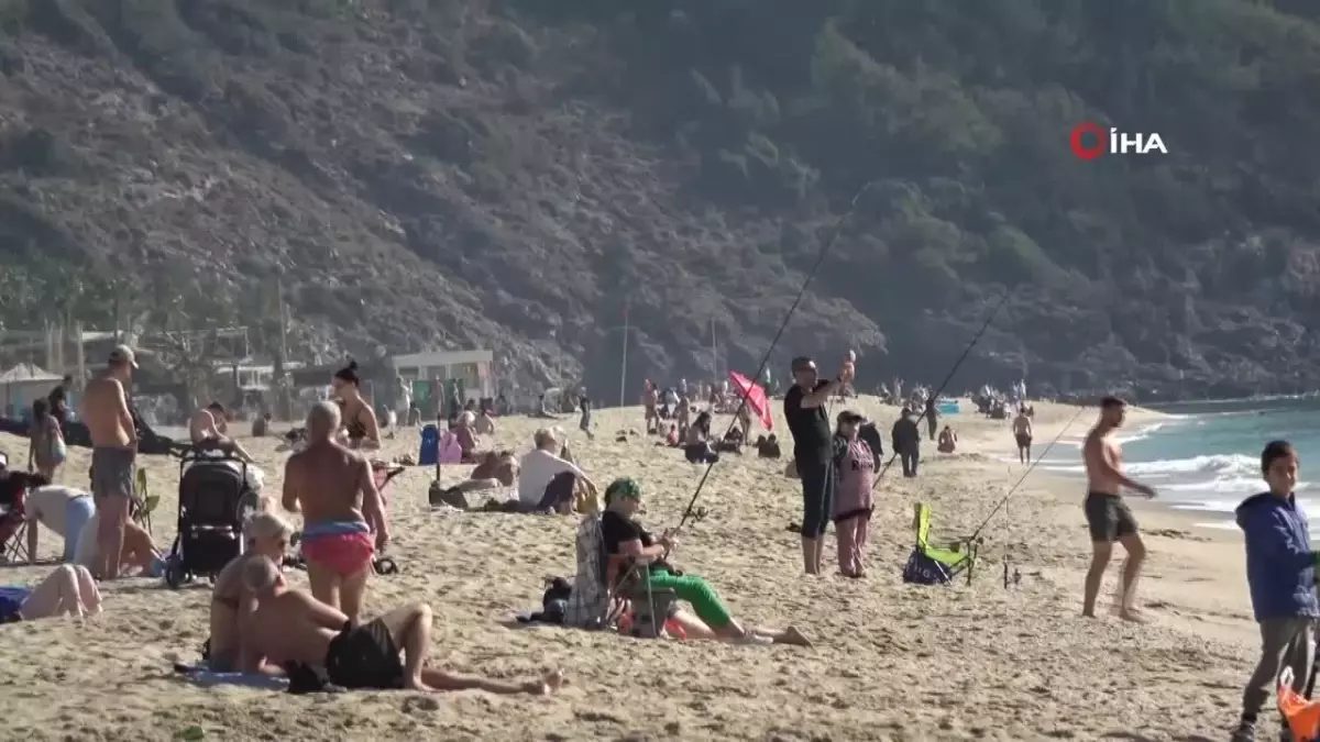 ANTALYA – Antalya’nın Alanya ilçesinde güneşli havayı fırsat bilen yerli ve yabancı turistler Damlataş plajını doldurdu.