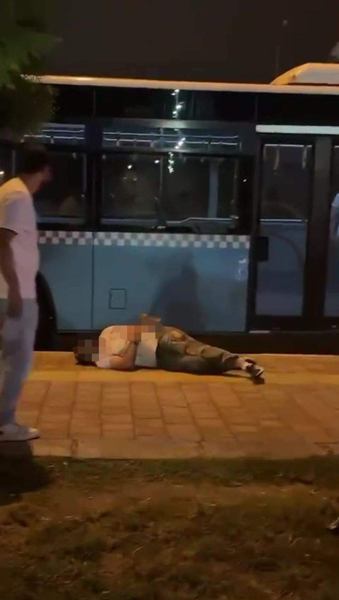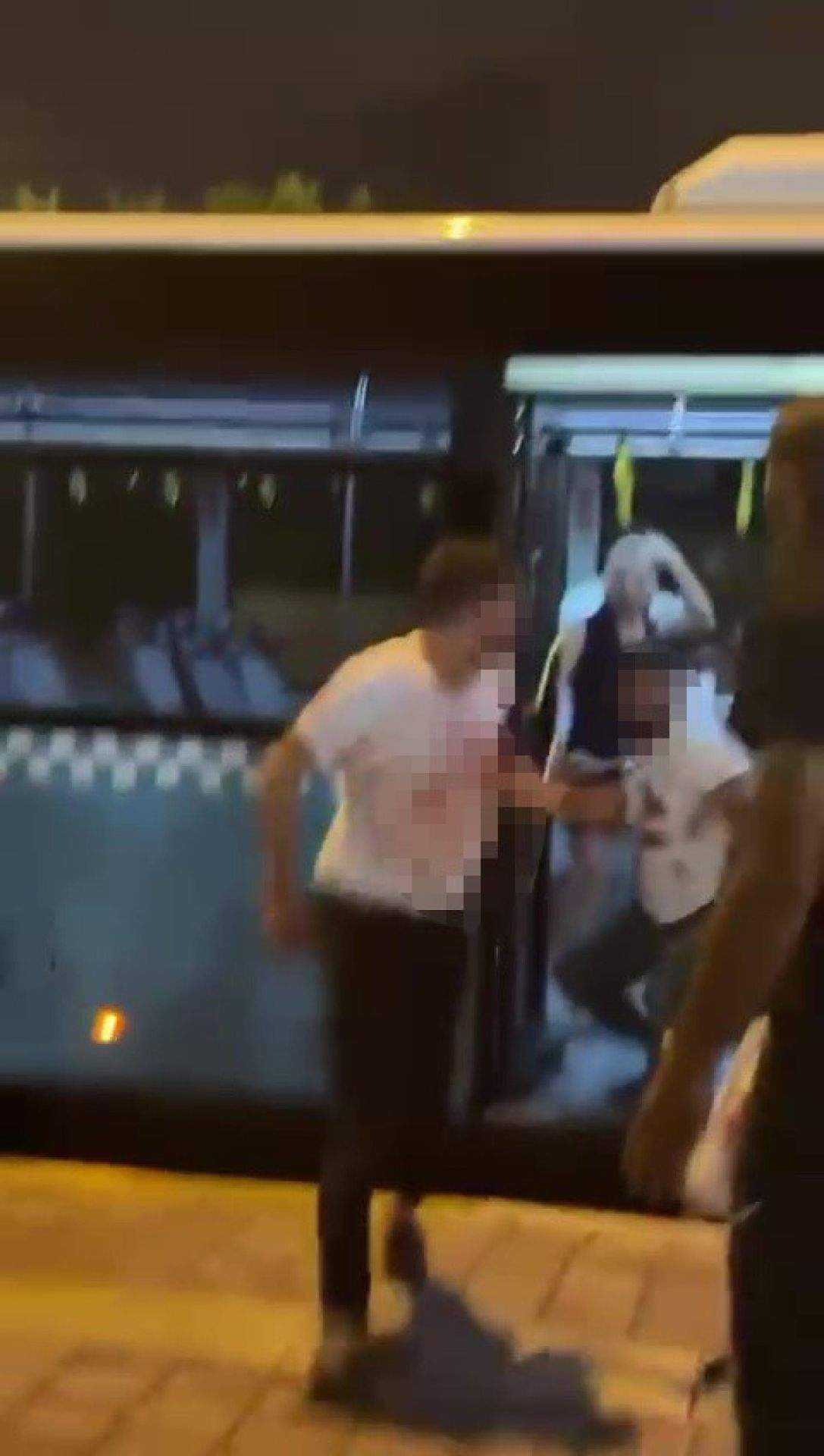 Şüphelinin yolcuyu bıçakla yaraladığı kavga, çevredekiler tarafından görüntülendi.