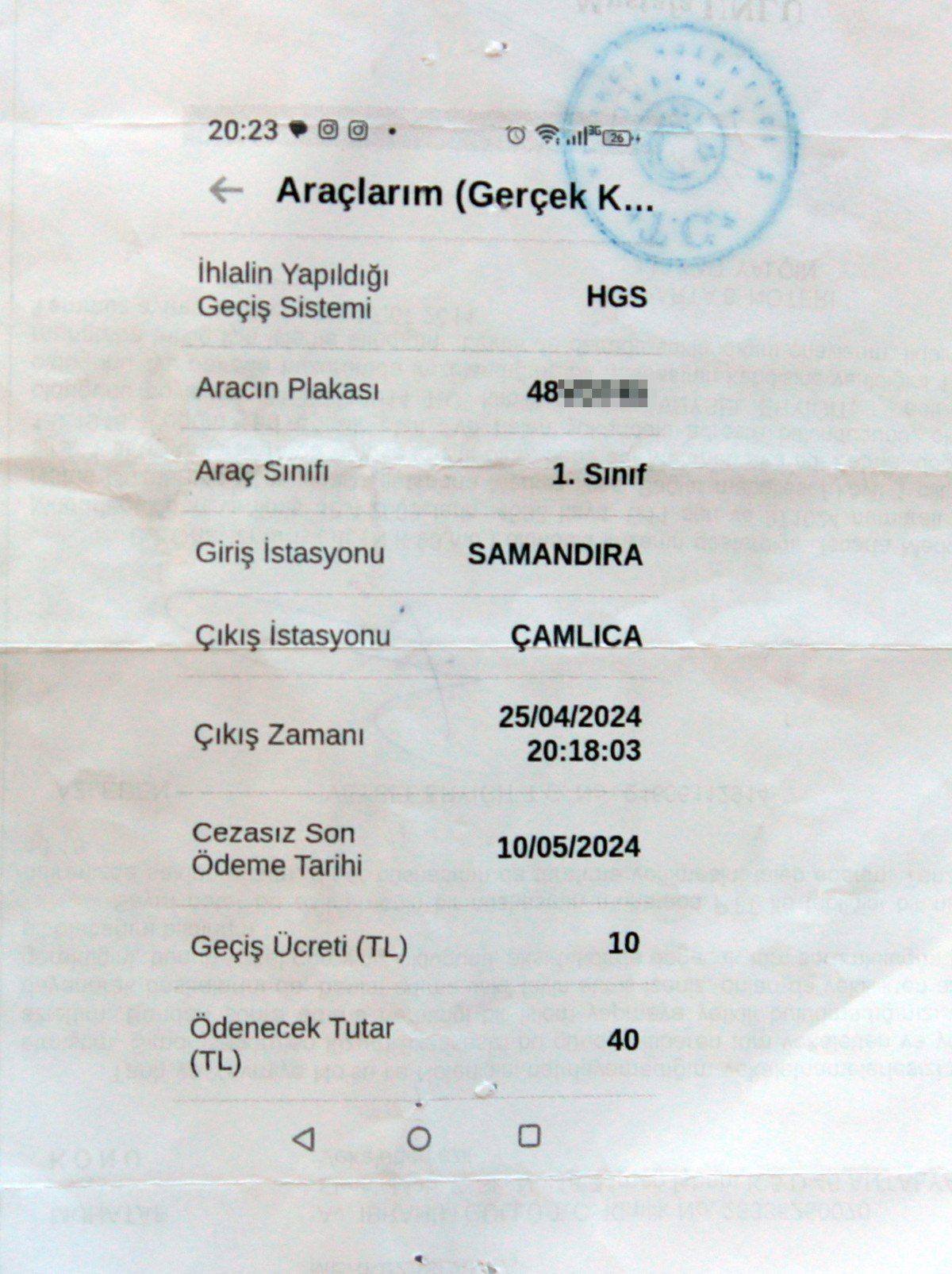 Ardından HGS ve karayolları bölümüne de bakmak istedim ve şoka uğradım. 25 Nisan saat 20.18’de Çamlıca-Samandıra geçişinde 10 liralık bir ceza yemişim. Ben bugüne kadar hiç araçla İstanbul’a gitmedim. Üstelik bu tarihlerde de gitmedim. Benim aracım İzmir, Bodrum ve Antalya’yı gördü. O nedenle çok şaşkınım.