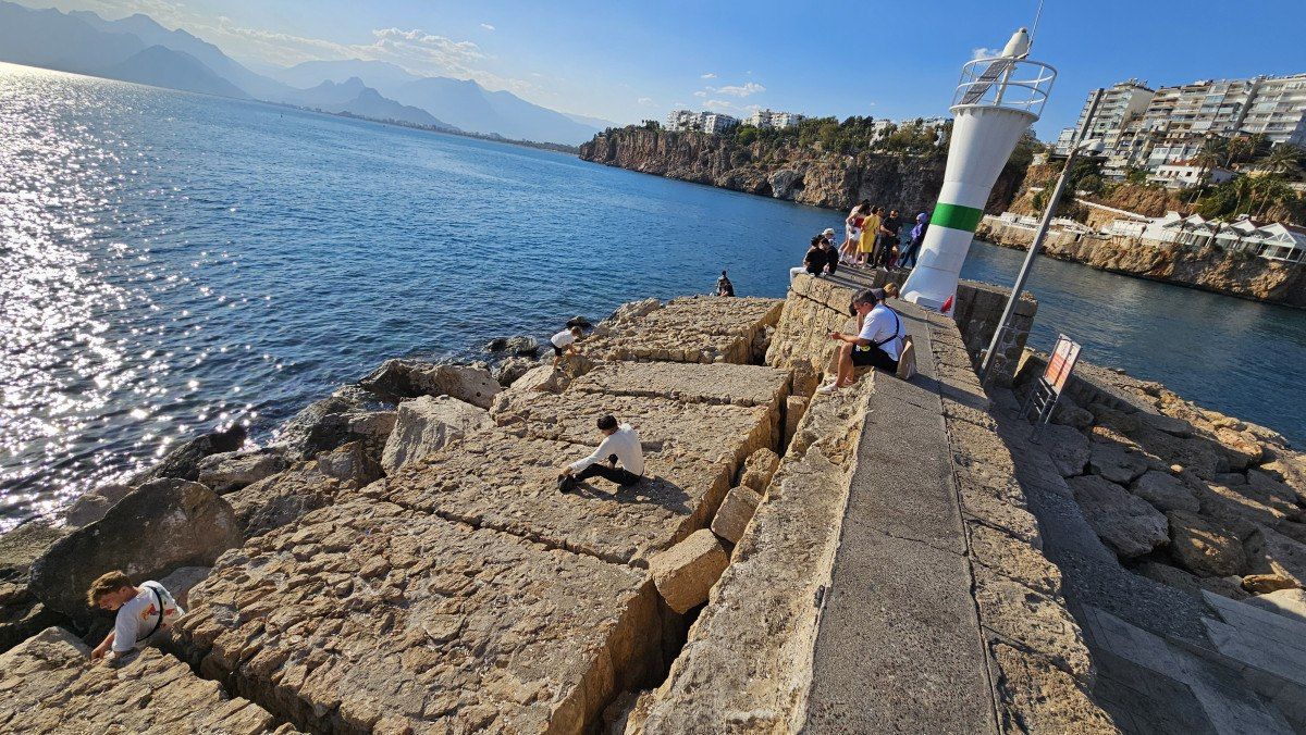 15 derece çökerek eğim oluşan ve bazı yerlerindeki yüzlerce kiloluk taş blokların düştüğü, oyuklar oluşan iskele üzerinde binlerce yerli ve yabancı turistin gezdiğine dikkat çeken Ünlü, “Bu sene iki üç tane olay oldu burada. Bazıları düştü, kafalarını yardı. Ambulansla hastaneye götürmek zorunda kaldılar. Bunun bir an önce tadilatla, tamiratla ve bir komisyon kurularak revize edilmesi gerekiyor. Dalgaları kesmek için ön tarafta bir dalgakıran olmalı. İskelede su terazisiyle ölçüm yaptık ve 15 derece Yat Limanı’na doğru mendireğin yatma ve çökme durumu var. Bir de bunun alt tarafı var. Yani Mermerli Plajı tarafından gelen dalgaların etkisiyle mendirek kayalarında yıpranma ve deniz dibinde çökme var” diye konuştu.