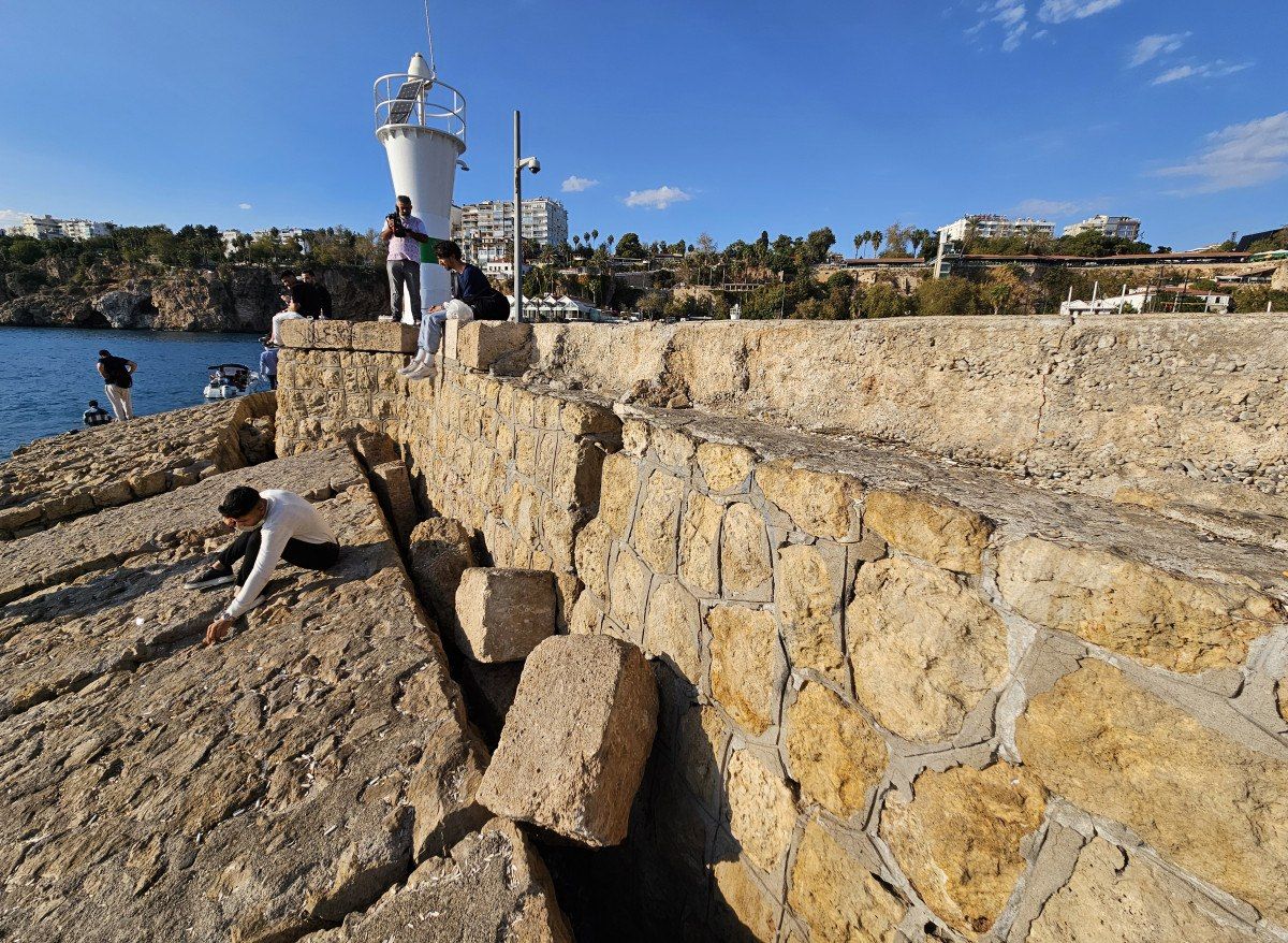 İskeleden düşen taş blokların ağırlıklarının en az 250-300 kilo olduğunu söyleyen İzzet Ünlü, “Bu taşlar geçen seneki fırtınada iskeleden kopup düştü, limanda bir tekne de battı. Bu taşların yerine konması gerekiyor. Diğer taş blokların da düşme riski var ve acilen onarımdan geçirilmeli. Ayrıca iskeledeki birçok bölgede önceki yıllarda tespit ettiğimiz çatlakların daha büyüdüğünü görüyoruz. İki sene önce 15 santimetre civarındaki çatlak genişliği 25 santimetreye yükselmiş. Zemin oturuyor ve yatıyor. İskele fenerinin olduğu alandaki çatlaklar da büyüyor. Oradaki dev taşların da düşme tehlikesi var. Derz dolguları azalmış, iskelenin yıkılma riski daha büyümüş durumda” dedi.