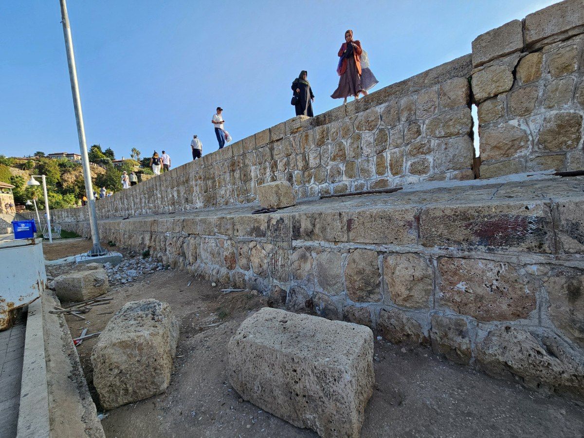 Geçen yılki fırtınada 15’e yakın yüzlerce kiloluk taş blokların düştüğü iskelede yapılan teknik incelemelerde, binlerce kişinin üzerinde yürüyüş yaptığı iskele yüzeyinin 15 derece limana doğru tarafa eğildiği de ortaya çıktı.