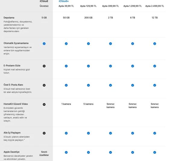 Apple, Türkiye’de iCloud abonelik ücretlerine yüzde 60 oranında zam yaparken fiyat artışları sonrası paket ücretleri şu şekilde değişti;