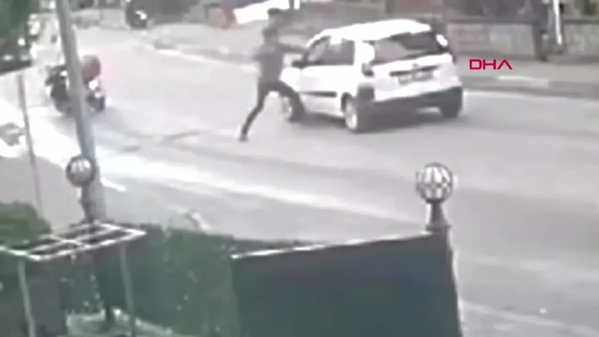 BARTIN’da otomobilin arkadan çarptığı motosikleti kullanan kurye, kaskını sürücüye fırlatıp, aracın camından yumruk attı. Taraflar birbirinden şikayetçi olmazken, o anlar güvenlik kamerasına yansıdı.