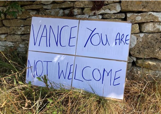 Vance’in tatili sırasında Nigel Farage ile kahvaltı yaptığı, The Apprentice yarışmasıyla tanınan Thomas Skinner ile mangal partisi düzenlediği öğrenildi. Ancak köyde “Vance Hoş Gelmedin Partisi” düzenleyen protestocular da vardı. “Stop Trump Coalition” adlı grup, Vance’i “otoriter, demokrasi karşıtı ve nefret siyaseti yürüten” biri olarak nitelendirdi.