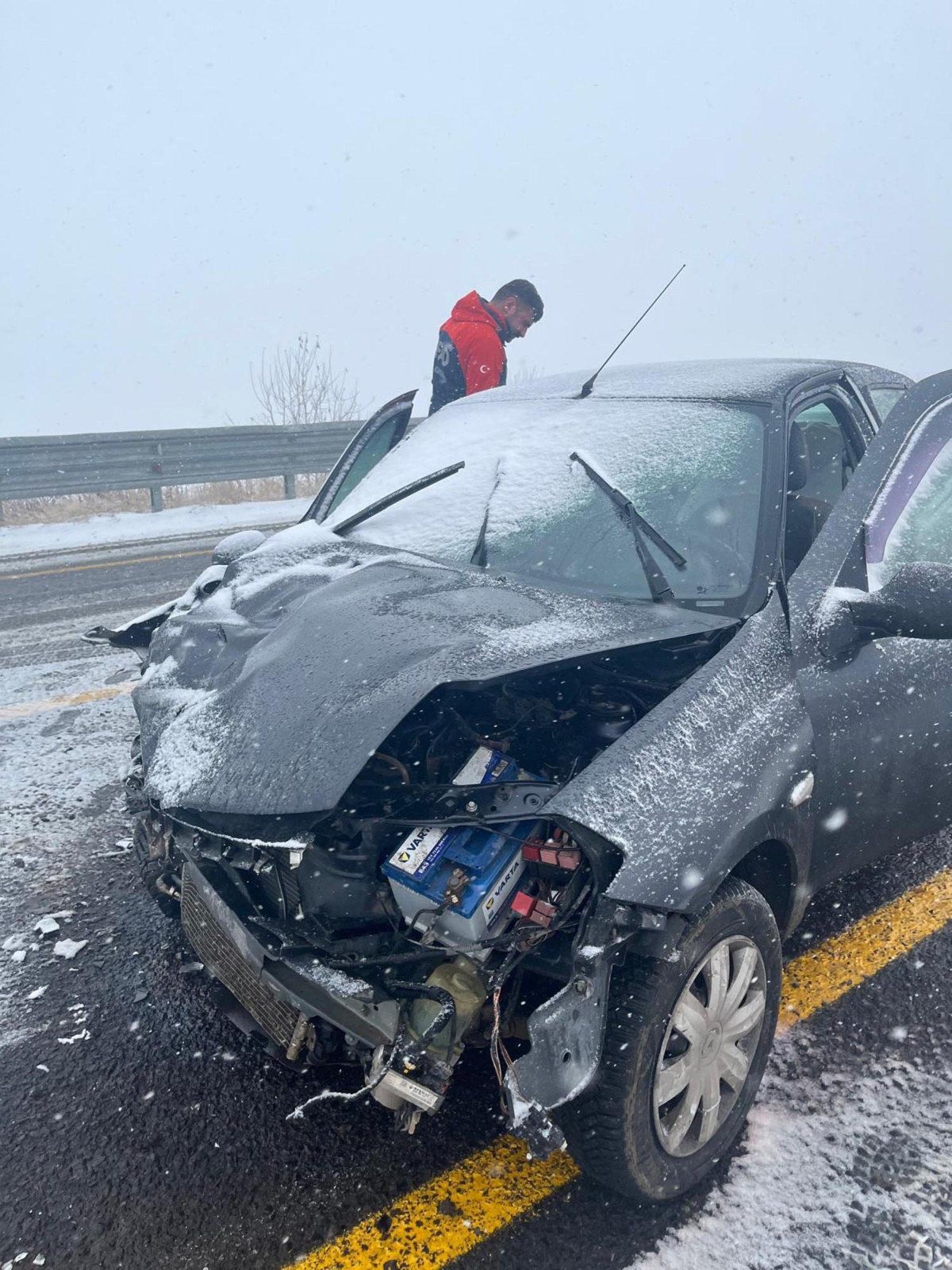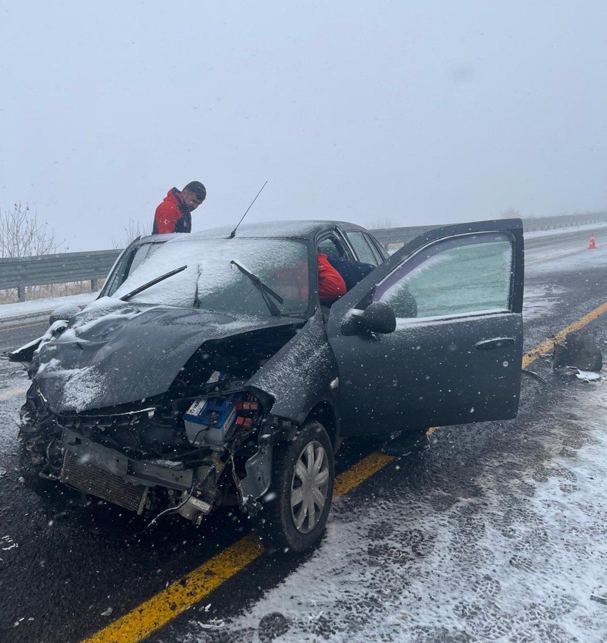 Görüş mesafesinin 5 metreye kadar düştüğü 2 bin 550 rakımlı Ilgar Dağı Geçidi’nde seyreden bir sürücü, karşı yönden gelen otomobil ile kafa kafaya çarpıştı.