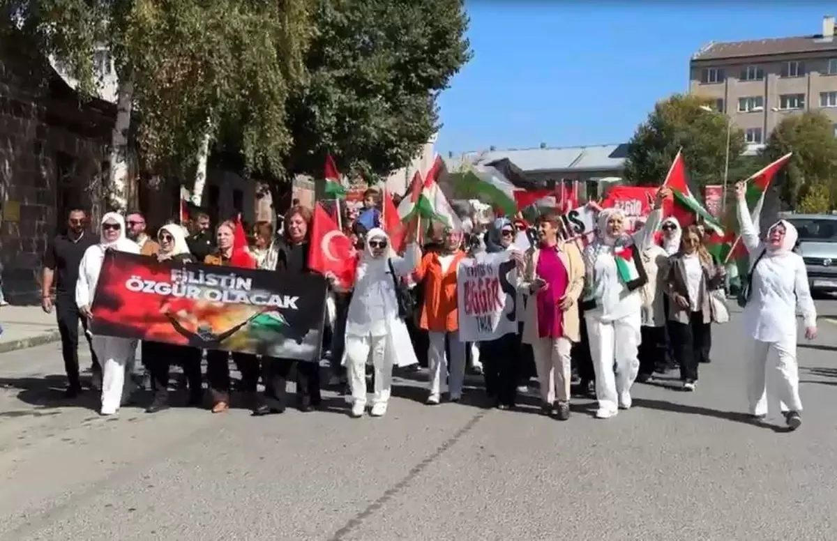 Ardahan'da kadınlar, Filistin'e destek için yürüyerek İsrail'i protesto etti.