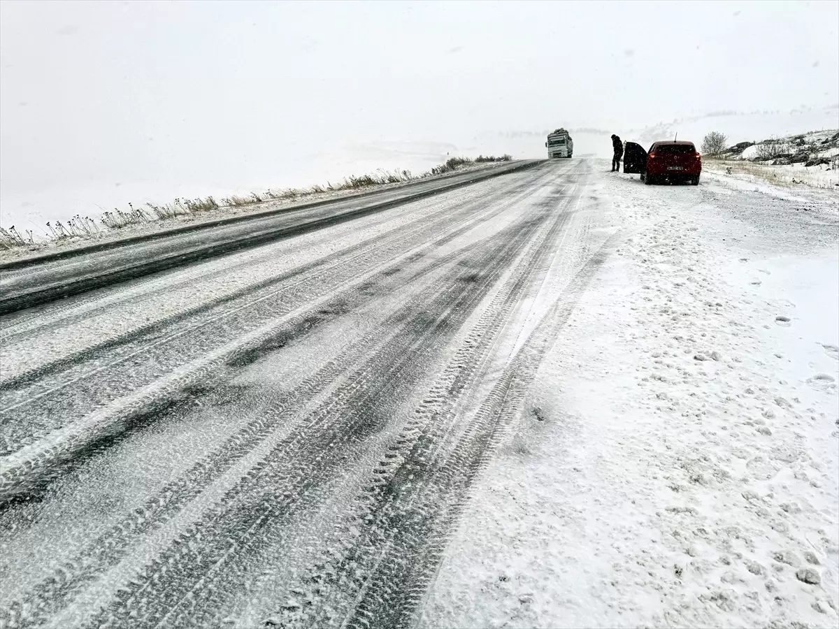Ardahan-Şavşat kara yolunun Sahara mevkisinde oluşan buzlanma nedeniyle 4 tır ile 3 araç yolda kaldı.