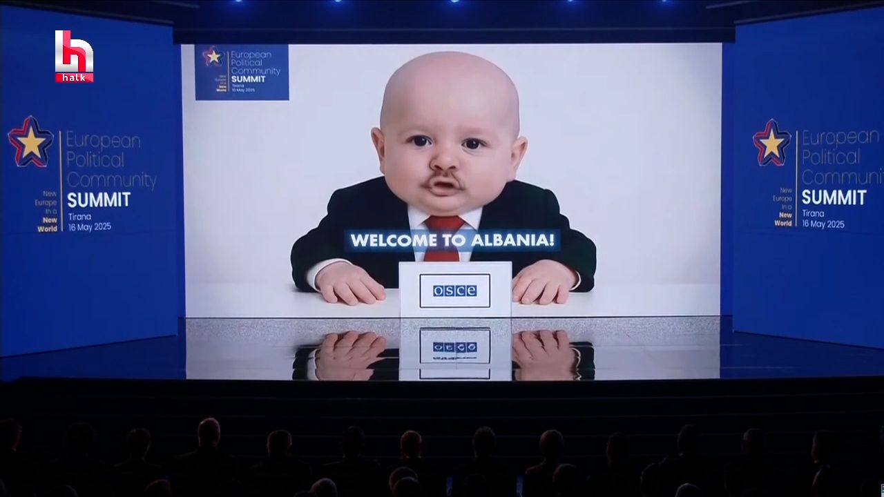 Tiran‘daki Zirve‘nin açılışı renkli görüntülere sahne oldu. Zirveye katılan liderlerin yapay zeka ile oluşturulmuş bebek hallerinin videosu oynatıldı.