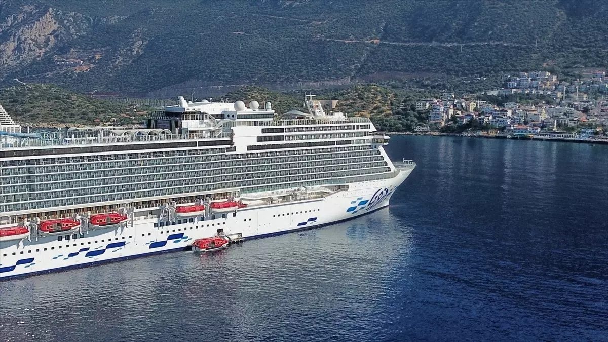 Kaş’taki körfeze yanaşan 335 metrelik gemide, çoğu Rus 1750 yolcu ile 1428 personel bulunduğu belirtildi.