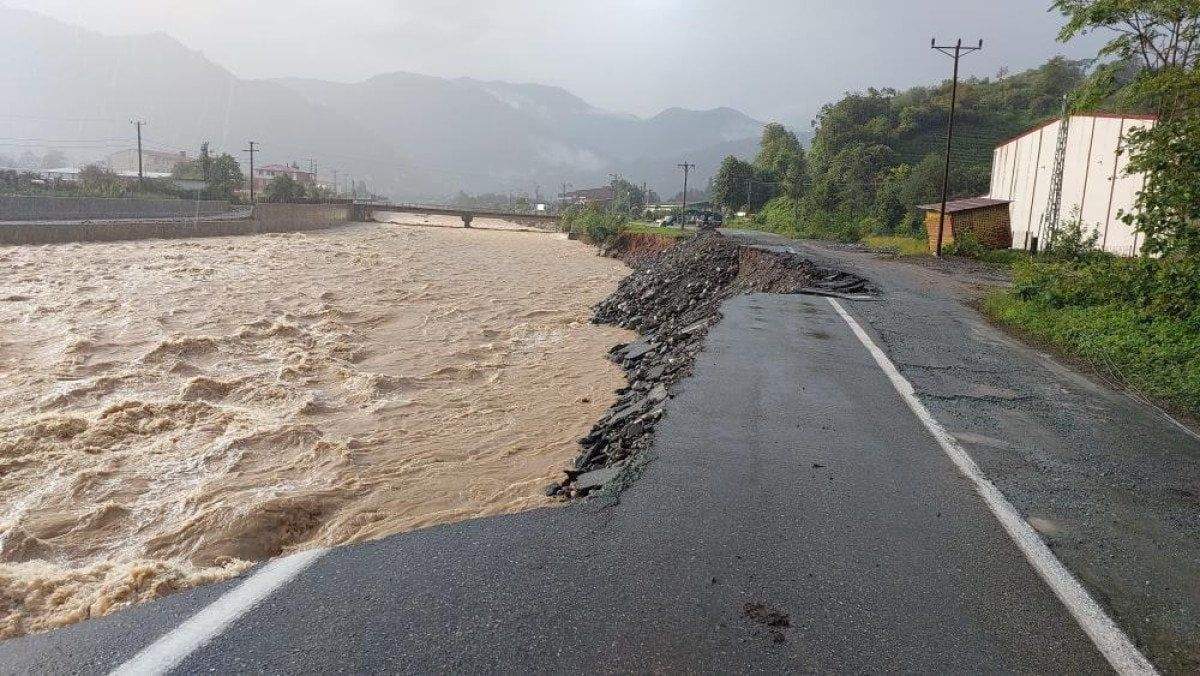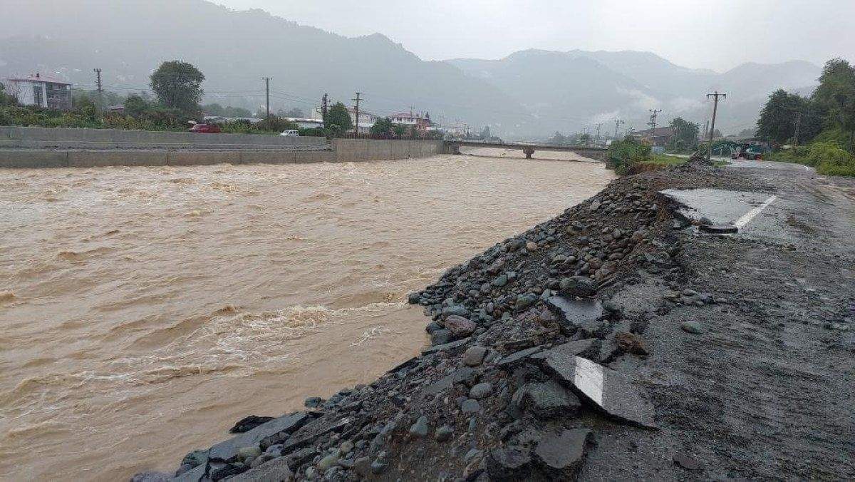 Arhavi ilçesinin köylerine giden grup yolu Kale Mahallesi Mehmet Nazif Günal Caddesi mevkiinde su taşkınları nedeniyle çökerken, Karayolları ekipleri yolu ulaşıma açmak için çalışma başlattı.