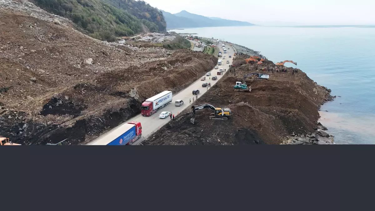 Karadeniz Sahil Yolu’nda ekipler, yol açma, temizlik ve yol onarım çalışmalarını sürdürüyor. Akıntının devam ettiği yamaçtan kopan toprak ve kayaların ulaşıma kapanan yolda ekipler, iş makineleri ile hafriyat kaldırma işlemlerine devam ediyor. Gece geç saatlere kadar süren çalışmalar sabahın ilk ışıklarında yeniden başladı. Heyelanın izlerinin silinmeye çalışıldığı bölgede ulaşım tek yönden sağlanmaya devam ediyor.
