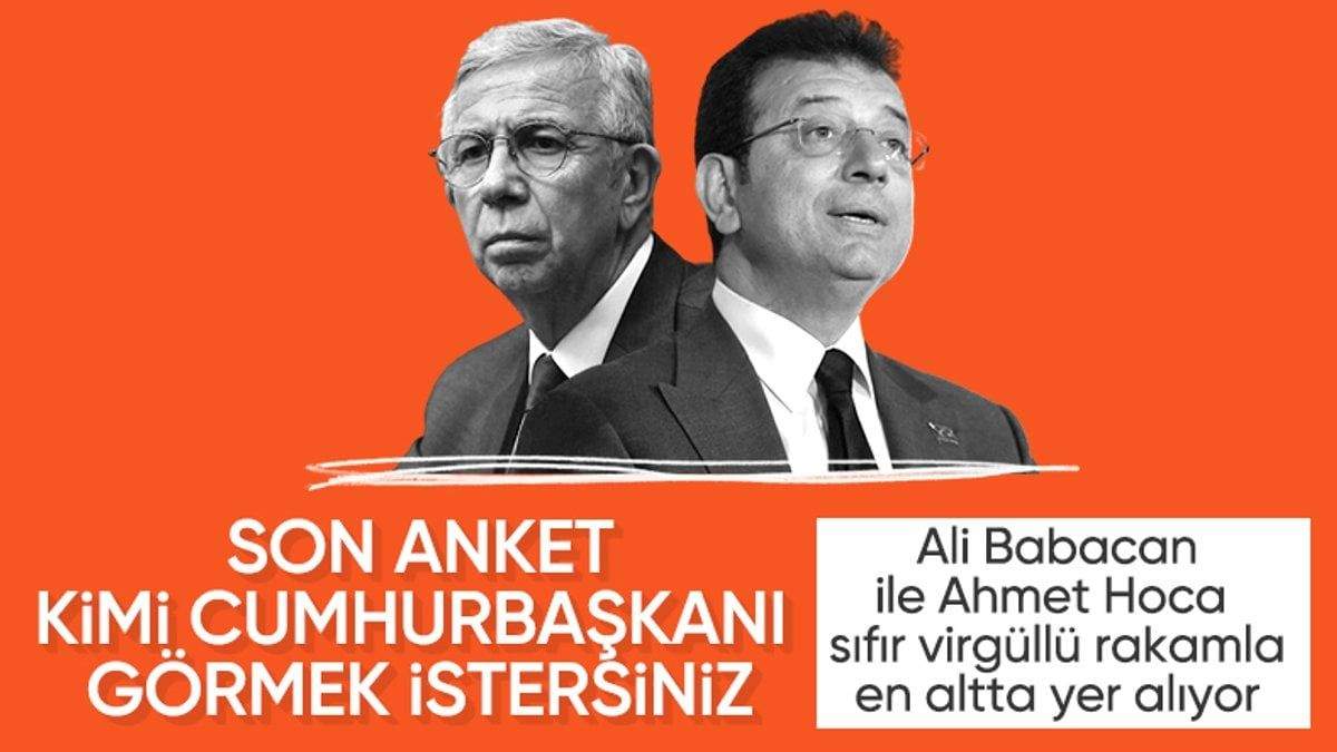 Araştırmaya katılanların yüzde 29,6’sı fikrim yok/cevap yok yanıtını verirken, yüzde 23,5’i Ankara Büyükşehir Belediye Başkanı Mansur Yavaş aday olmalıdır dedi. Mansur Yavaş’ın ardından İstanbul Büyükşehir Belediye Başkanı Ekrem İmamoğlu yüzde 20,8 destek görürken, Ekrem İmamoğlu’nu yüzde 10,1 oranla CHP Genel Başkanı Özgür Özel izledi.