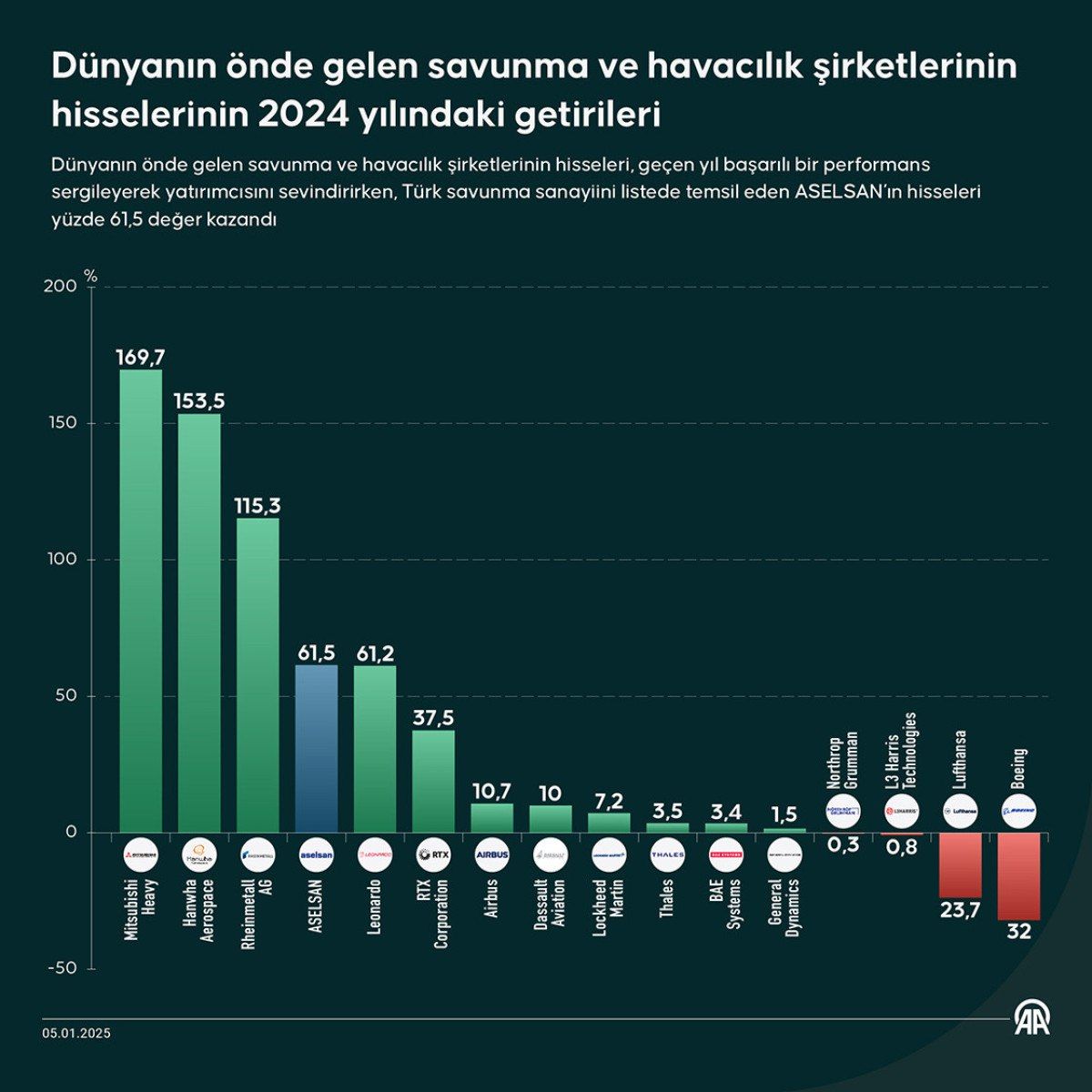 Türk savunma sanayiini listede temsil eden ASELSAN’ın hisseleri ise yüzde 61,5 değer kazandı.