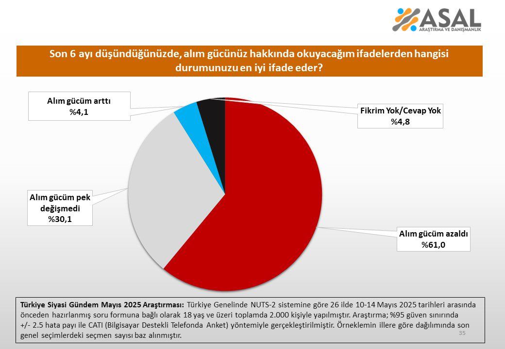 Hal böyle olunca sürekli bir şekilde toplumun nabzını tutan kamuoyu araştırma şirketlerinin anket sonuçlarında da bu durum tecelli ediyor. Asal Araştırma Şirketi tarafından yapılan alım gücü anketinin sonuçları yayımlandı.
