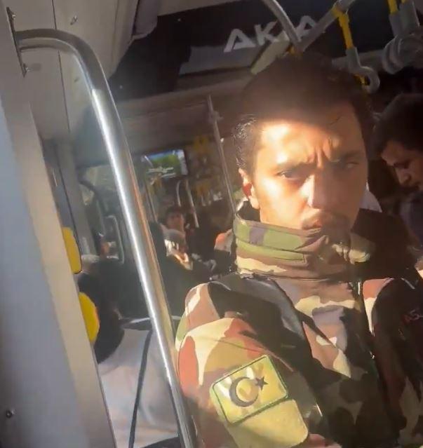 İstanbul’da askeri kamuflaj kıyafetiyle toplu taşıma aracında yolculuk yaparken sosyal medyaya görüntüleri yansıyan yabancı bir şüpheli Beylikdüzü’nde gözaltına alındı. Hakkında “usulsüz kamu elbisesi veya nişanesi kullanmak” suçundan işlem yapılan kişinin sınır dışı edileceği açıklandı.
