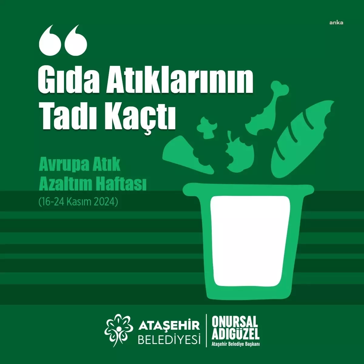 Ataşehir Belediyesi, atık önleme konusunda farkındalık oluşturmayı amaçlayan bir girişim olan Avrupa Atık Azaltım Haftası’nda (European Week for Waste Reduction) etkinlikler düzenliyor. Bu yılın teması olarak “Gıda Atıkları” başlığı seçilirken, “Gıda Atıklarının Tadı Kaçtı” sloganıyla da Avrupa Atık Azaltım Haftası kapsamında 16-24 Kasım 2024 tarihlerinde farkındalık etkinlikleri yapılacak.