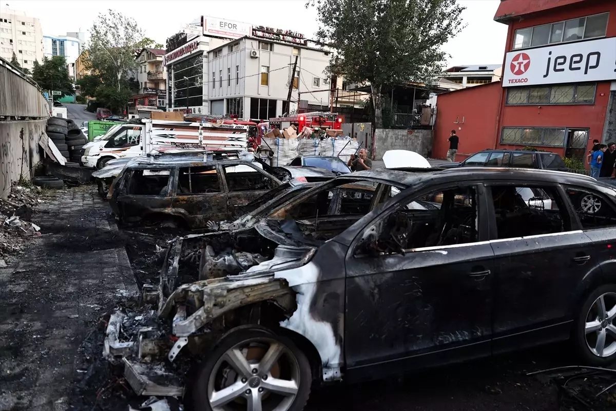 Kısa sürede büyüyen alevler, sanayi sitesinde tamir için bekleyen diğer otomobiller ile bir otelin açık otoparkındaki araçlara da sıçradı.