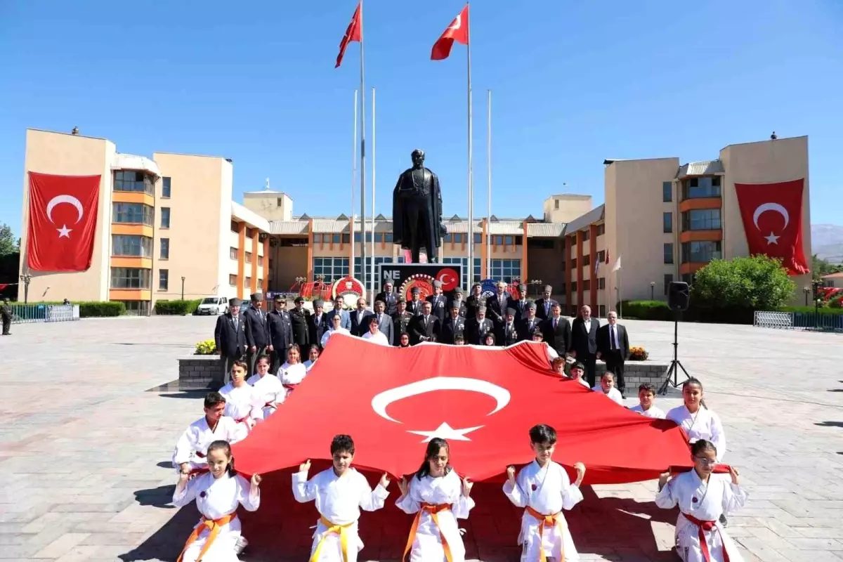 Yıl dönümü dolayısıyla Gençlik ve Spor İl Müdürlüğü sporcuları, ellerinde Türk bayrağı ile Ergan Kavşağı’ndan belediye binası önündeki Atatürk Anıtı’na kadar yürüdü.