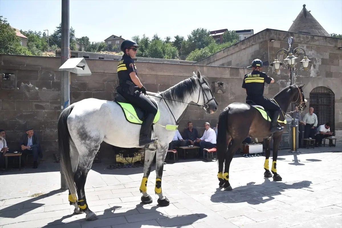 İl merkezindeki Gökmeydan’dan tarihi çarşı güzergahına kadar devriye gezen atlı polislere vatandaşlar ilgi gösterdi.