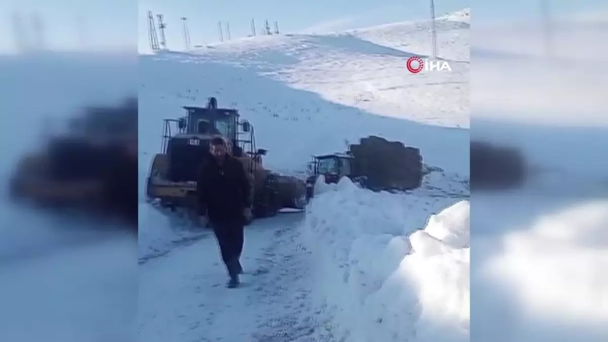 Tekman’da Ot Yüklü Traktör İş Makinesi ile Kurtarıldı