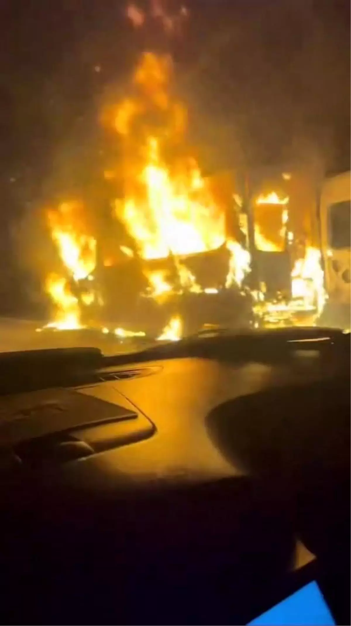 Hendek’te Servis Aracı Yangını
