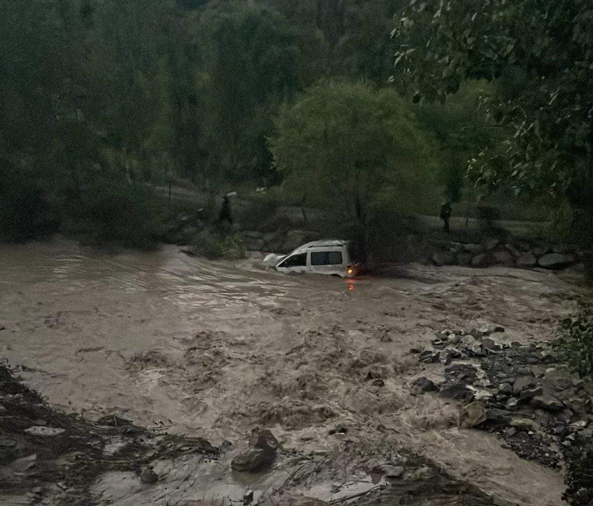 Erzurum’da Heyelan Sonucu Araç Tortum Çayı’na Sürüklendi