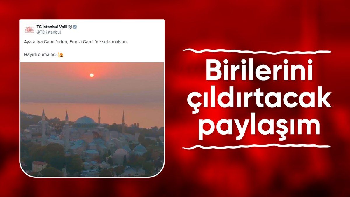 Valiliğin sosyal medya hesabından Ayasofya görüntüleri eşliğinde bir paylaşım yapılırken paylaşıma “Ayasofya Camii’nden, Emevi Camii’ne selam olsun… Hayırlı cumalar…” notu iliştirildi.