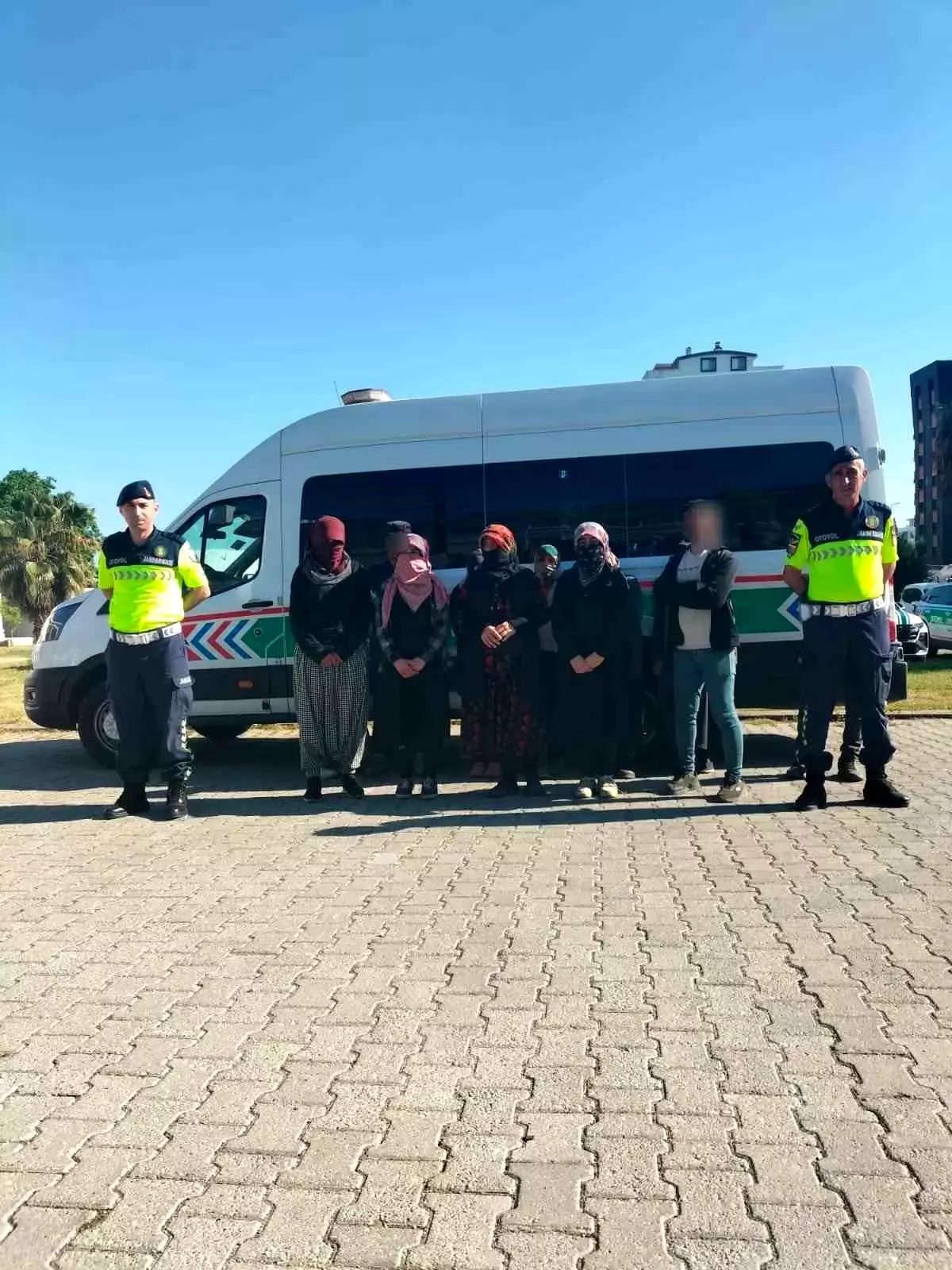 Aydın-İzmir Otoyolu Germencik Gişelerinde Aydın İl Jandarma Komutanlığı GKİT ve Hıdırbeyli Otoyol Jandarma Karakol Komutanlığı tarafından yol kontrol faaliyeti gerçekleştirildi. Yapılan denetimler esnasında bir araç içesinde organizatör olduğu değerlendirilen F.D. ve Y.E.C. isimli şüpheliler ile birlikte kimlik belgelerinin geçerlilik süresi dolan ve ikamet, çalışma izin belgelerinin bulunmadığı tespit edilen 12 düzensiz göçmen yakalandı. Yakalanan düzensiz göçmenler Aydın İl Göç İdaresi Müdürlüğü GÖKSEM’e teslim edilirken, şüpheliler hakkında adli süreç başlatıldı. – AYDIN