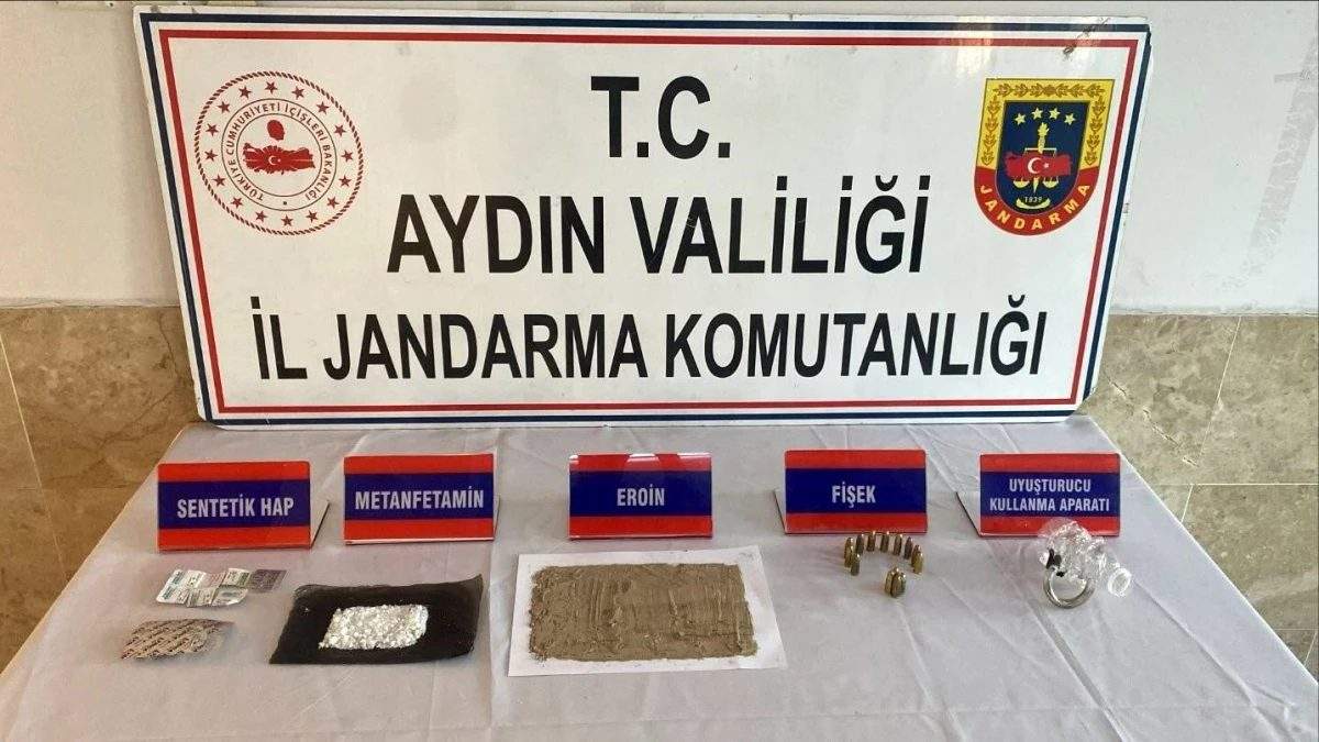 Aydın'ın Nazilli ilçesinde jandarma ekipleri tarafından yapılan operasyonda, bir pansiyon odasında uyuşturucu madde ele geçirildi ve kadın şahıs gözaltına alındı. Operasyonda, eroin, metamfetamin, sentetik hap, mermi ve bong aparatı bulundu.