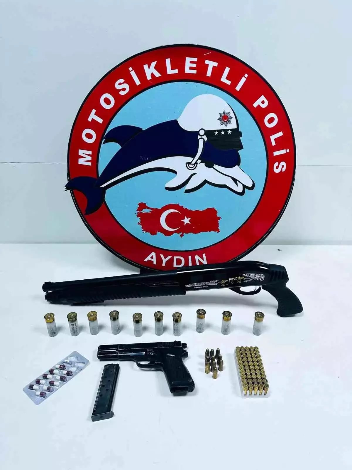 Aydın’da yunus ekipleri yaptıkları çalışmalarda durdurdukları bir araçta rusatsız tabanca ve uyuşturucu madde ele geçirildi.