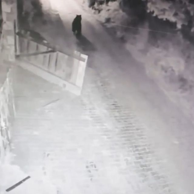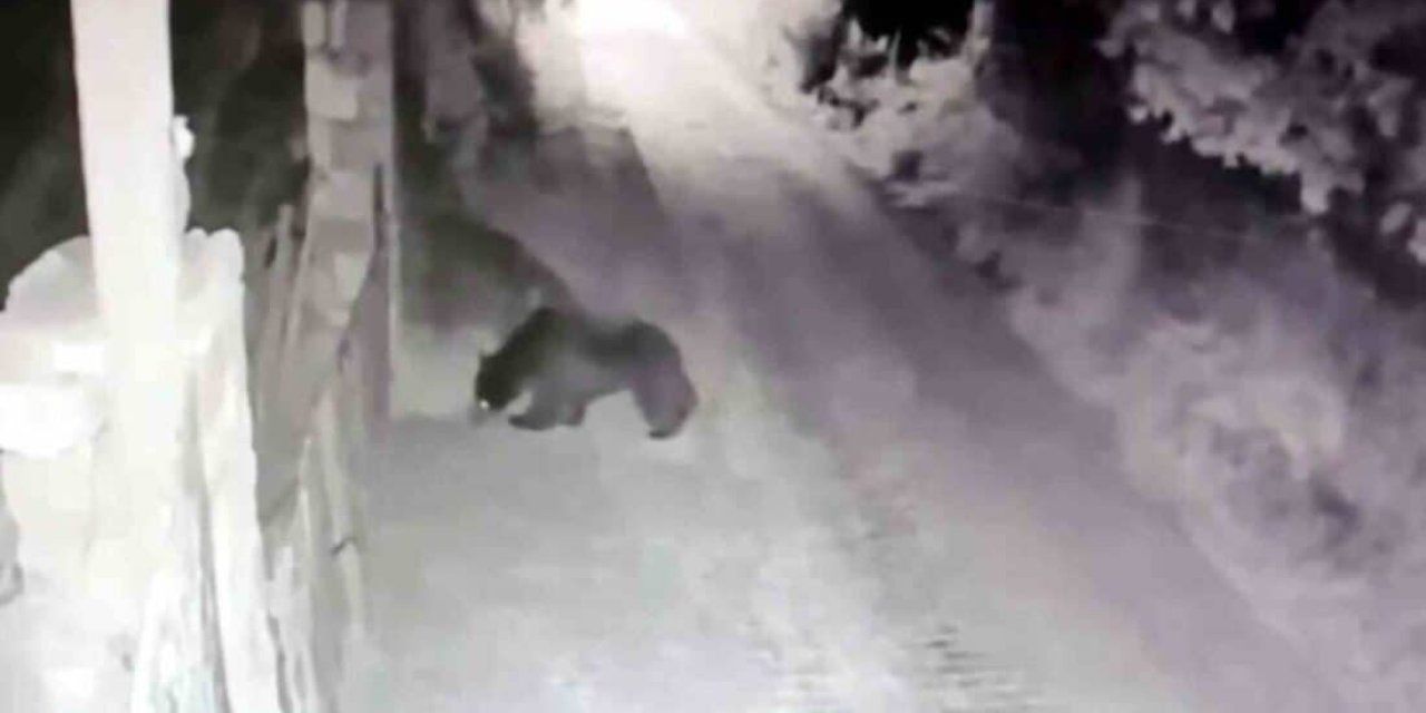 Ayının kapıyı açmaya çalıştığı anlar ise evin güvenlik kamerasınca görüntülendi.