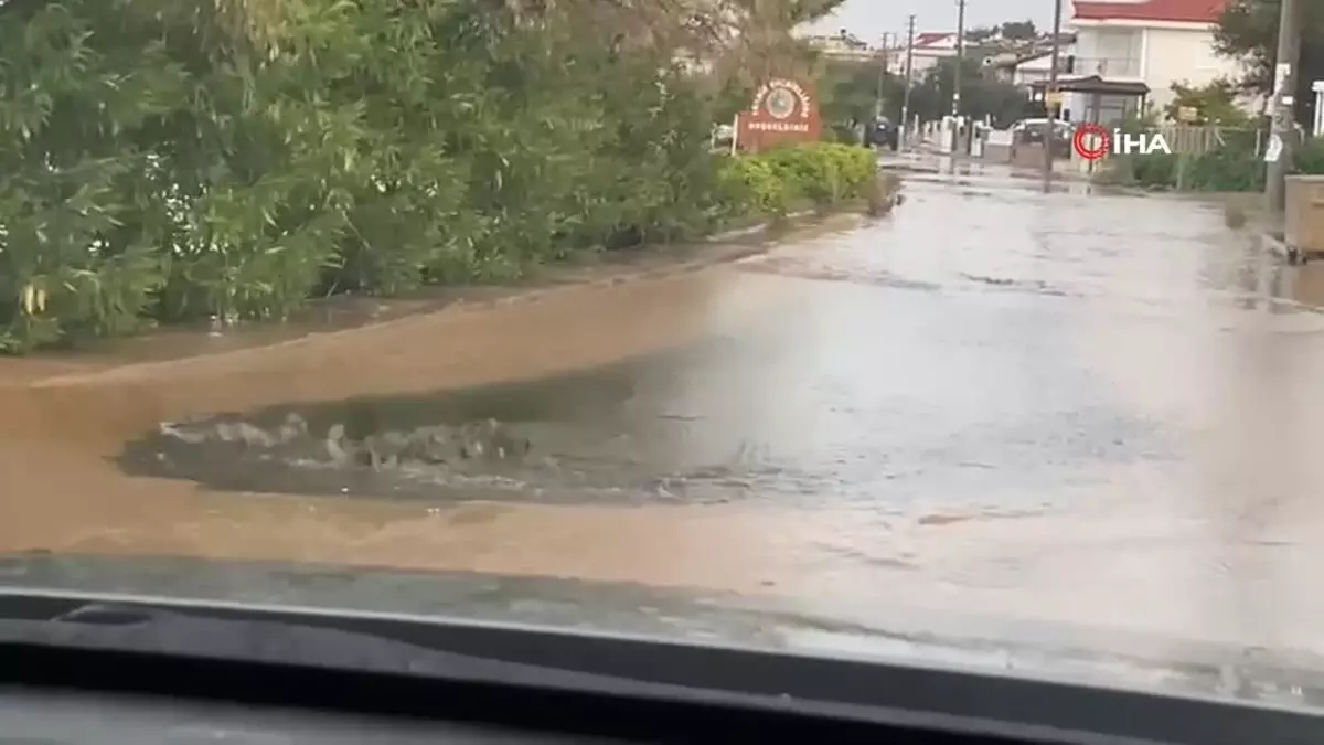 Ayvalık’ta sağanak yağış sonrası yollar göle döndü
