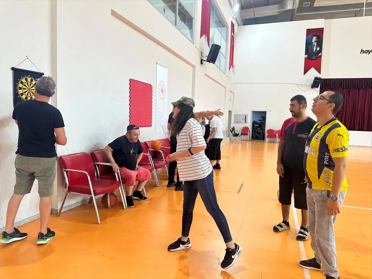 Otizmli gençler, anneleriyle birlikte ilk olarak çok amaçlı salonda düzenlenen sportif etkinliklere katıldı.