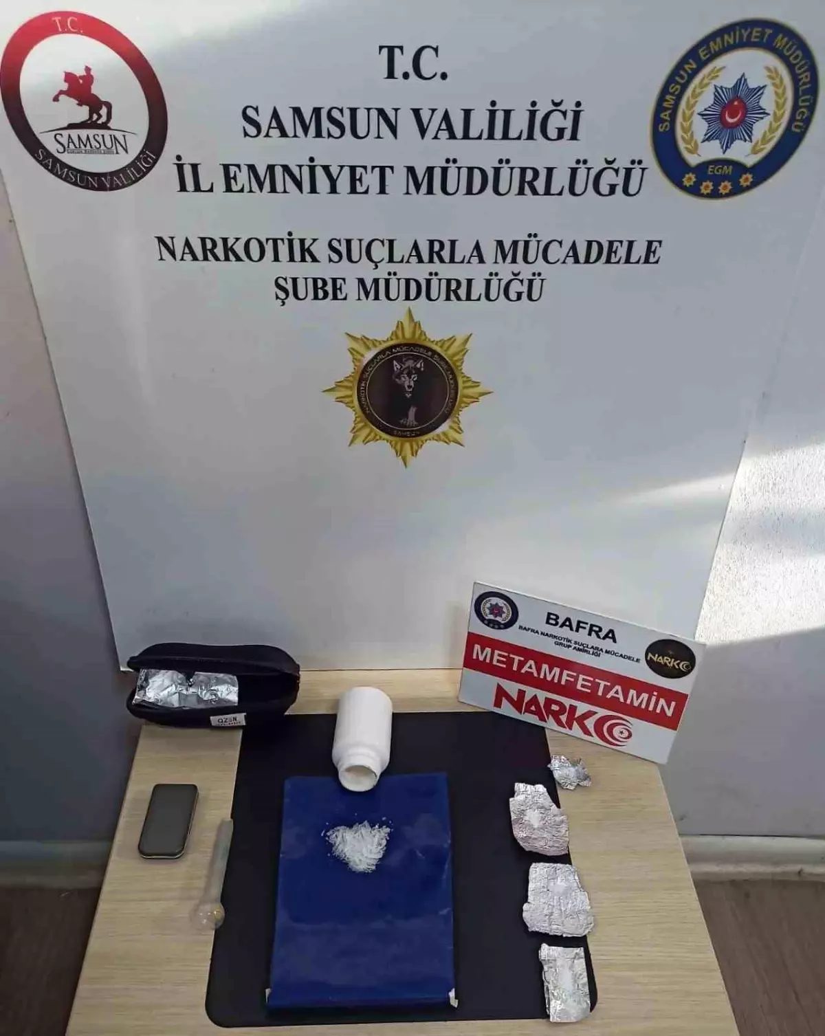 Bafra’da bir eve narkotik polisince düzenlenen operasyonda E.C. (42) ile yanında bulunan Z.A.(43), H.E. (46), Ö.A. (23), S.I. (43), B.Y. (35) ve O.M. (23) isimli kişilerin üzerlerinde arama yapıldı. Yapılan aramada, satışa hazır halde 5 parça toplam 20,66 gram metamfetamin, bir hassas terazi ve uyuşturucu madde kullanım aparatı ele geçirildi. Olayla ilgili gözaltına alınan 7 kişi hakkında yasal işlem başlatıldı. – SAMSUN