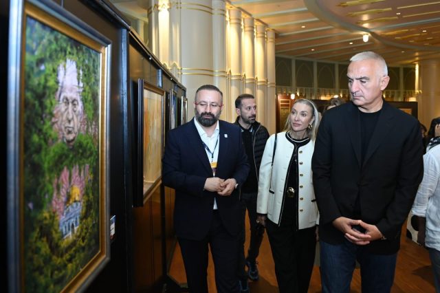 Kültür ve Turizm Bakanı Mehmet Nuri Ersoy, eşi Pervin Ersoy’la birlikte İstanbul Kültür Yolu Festivali kapsamında Beyoğlu’nda sanatseverlerle buluşan sergileri gezdi. Ersoy, Taksim’den Tophane’ye uzanan güzergahta birbirinden farklı temalara sahip dört önemli sergiyi ziyaret etti.