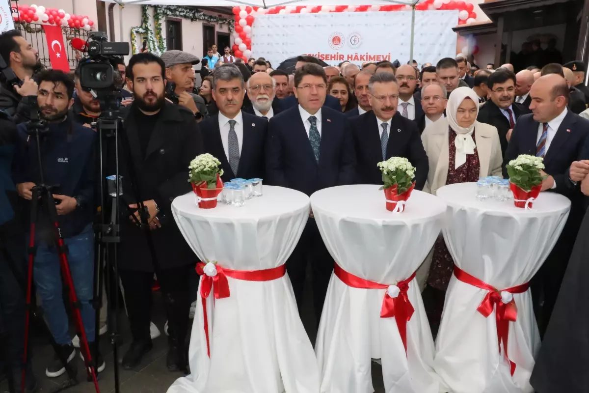 Adalet Bakanı Yılmaz Tunç, Tarihi Odunpazarı Evleri Bölgesi’ndeki İşyurtları Eskişehir Hakimevi’nin açılışında katıldı. Programda Bakan Tunç’un yanı sıra AK Parti Eskişehir milletvekilleri Fatih Dönmez, Ayşen Gürcan ve Nebi Hatipoğlu, Muharip Hava Kuvvetleri Komutanı Orgeneral İsmail Güneykaya, Büyükşehir Belediye Başkanı Ayşe Ünlüce, İzmir Cumhuriyet Başsavcısı Ali Yeldan, İl Jandarma Komutanı Tuğgeneral Erhan Demir, İl Emniyet Müdürü Tolga Yılmaz yer aldı.